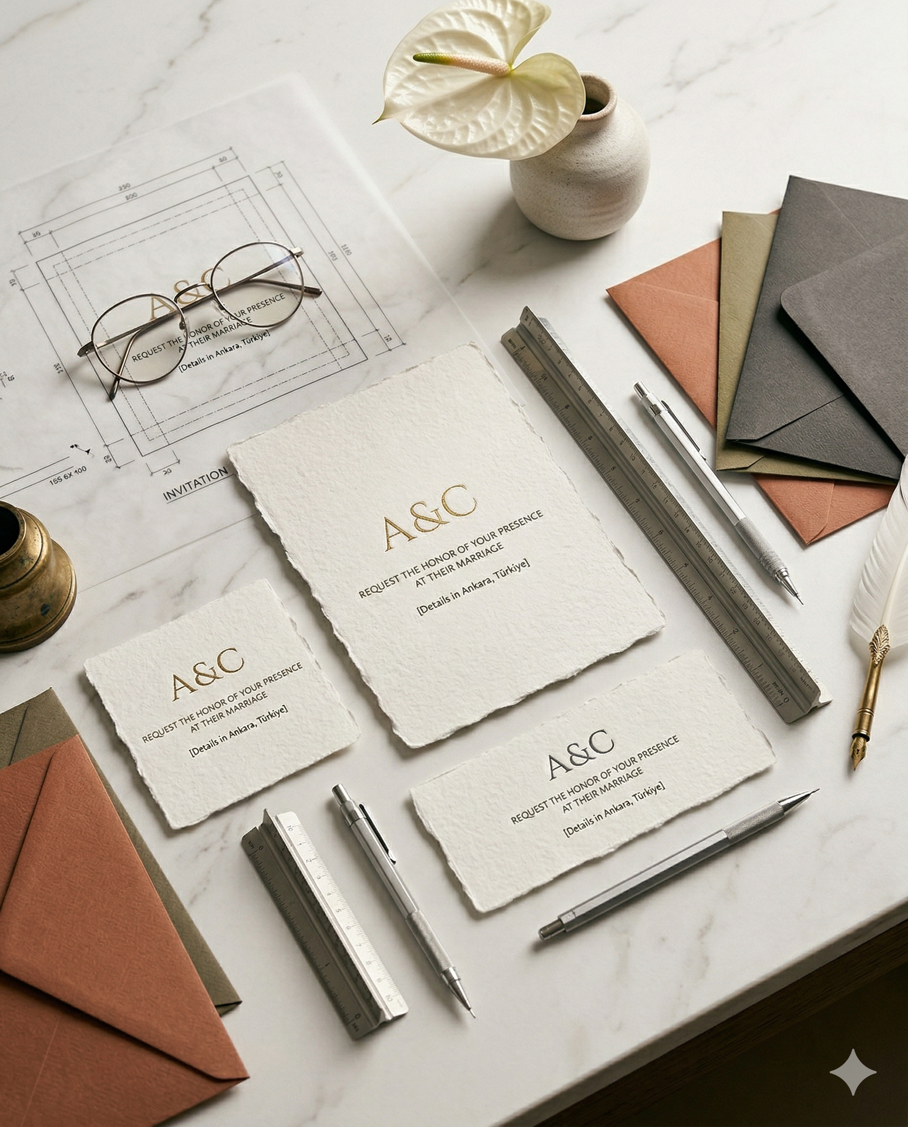 Tasarımınızın matbaada kesilmemesi veya zarfa sığması için bilmeniz gereken tüm ölçüler. Standart kare, dikdörtgen ve modern dijital davetiye boyutları rehberimizde.